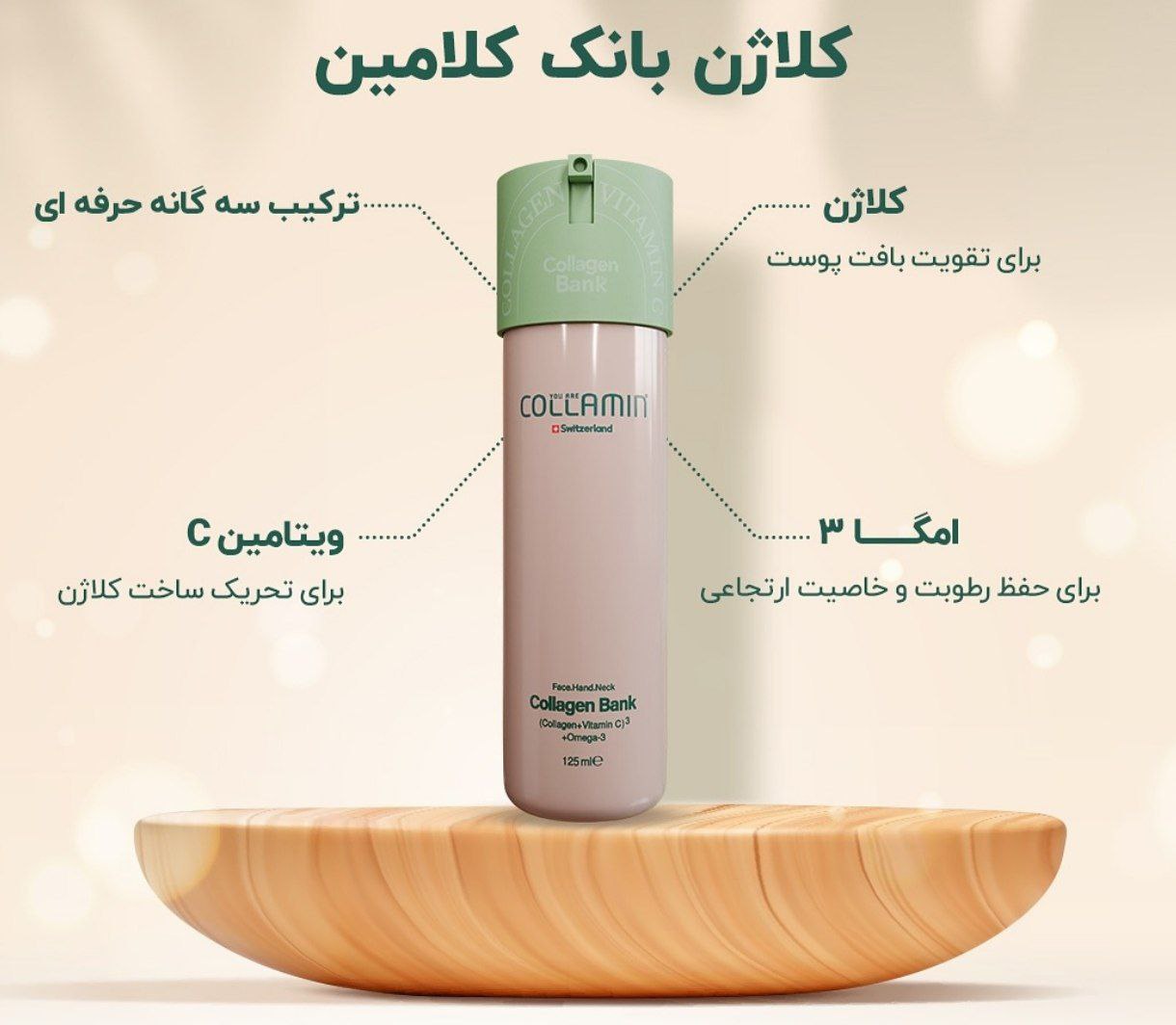 کرم کلاژن بانک کلامین حاوی امگا ۳ حجم ۱۲۵ میلیلیتر